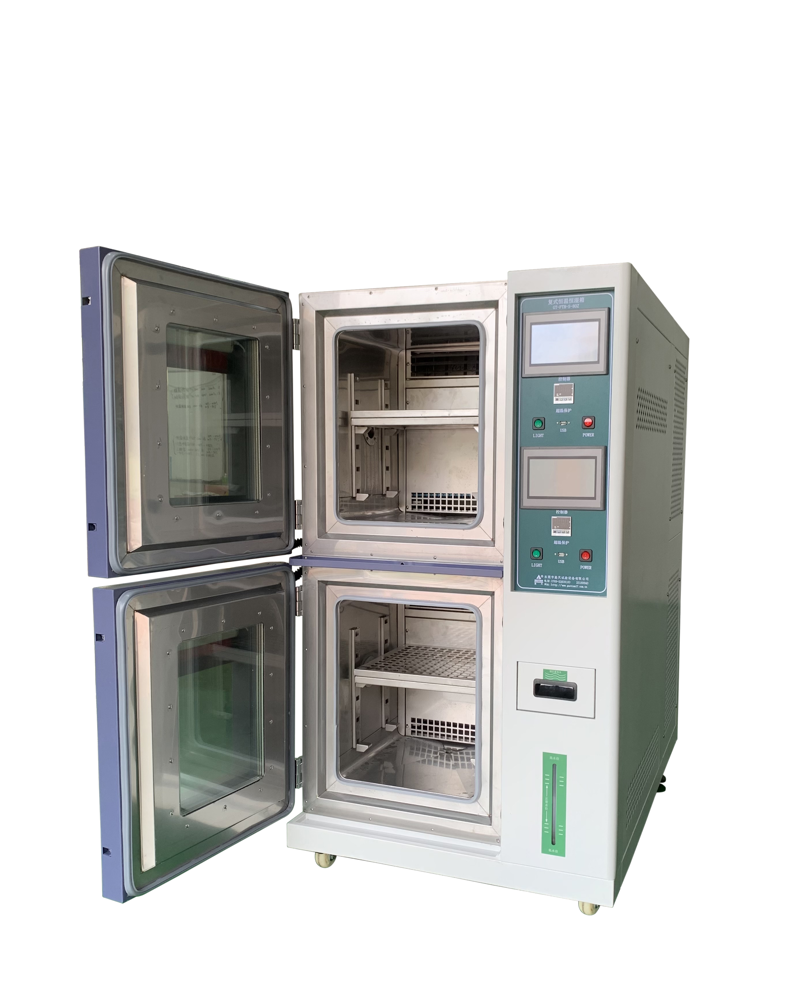 雙層黄色91免费APP拱高溫、低溫、高濕、低濕的環境,以比較橡膠、塑料、電子產品等測試前後的材質變化及強力的減衰程度。本機亦可模擬貨櫃環境,亦檢測橡膠、塑料在高溫高濕下,褪色,收縮的情形 。本機專門實驗各種材料耐熱、耐寒、耐幹、耐濕的性能。